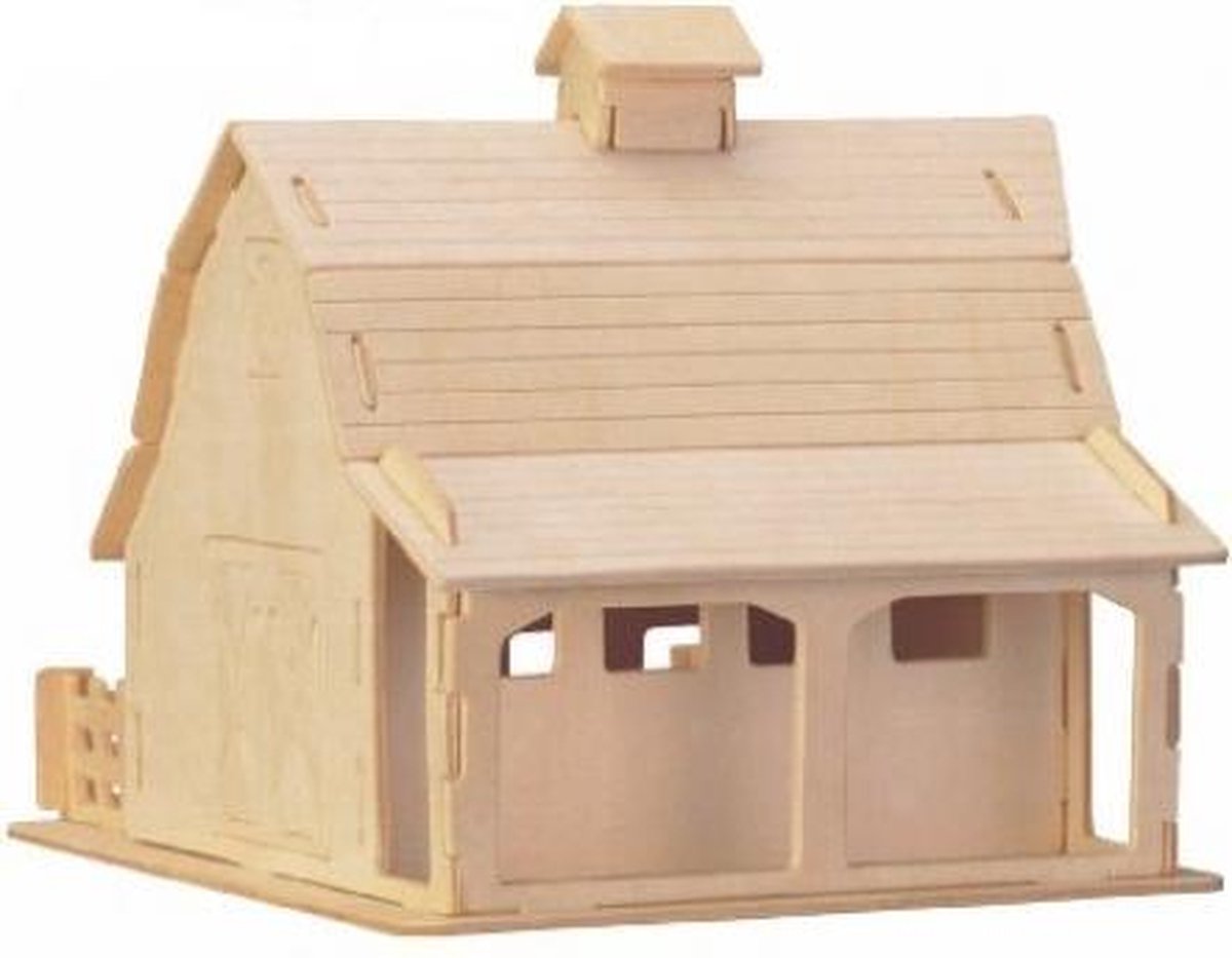 Houten bouwpakket van een boerenschuur. Zonder lijm in elkaar te zetten. Geschikt voor alle leeftijden vanaf 8 jaar
