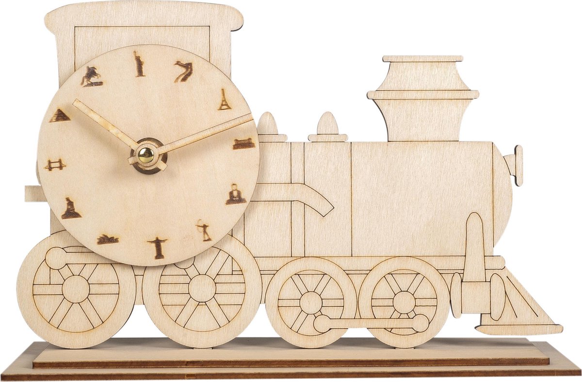 Leuk bouwpakket van een decoratieve klok voor de kinderkamer. Komt in blank hout en kan worden geschilderd. Afmetingen (l x b xh, in cm.): 22,0 x 8,0 x 15,0 Moelijkheidsgraad: Eenvoudig 1x Batterij AA: Niet bijgeleverd Inclusief zes kleuren verf en penseeltje