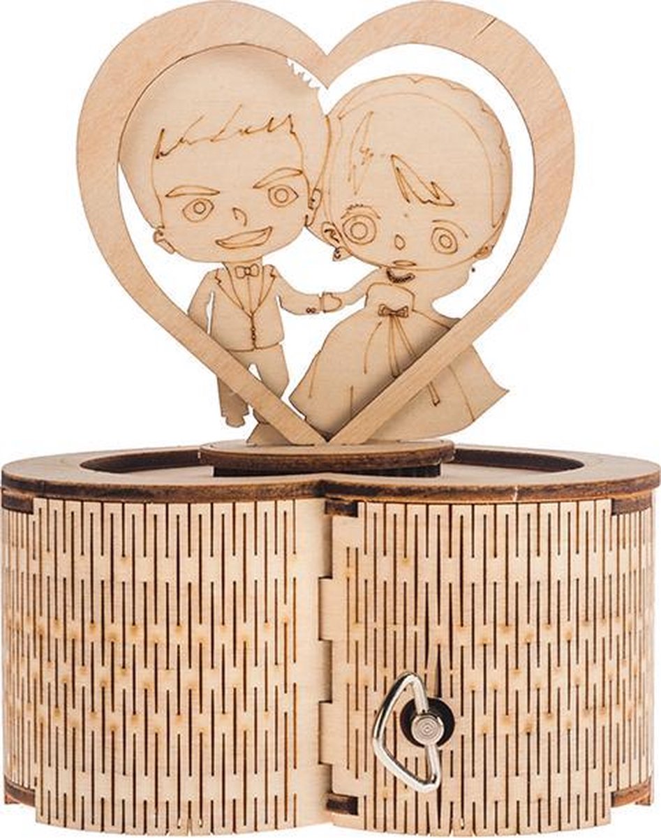 Bouw je eigen muziekdoosje-speeldoosje in de vorm van een hart waar een eigen fotootje in kan worden geplaatst. Inclusief verf en penseeltje. Ontzettend leuk om te bouwen met ook nog eens een functioneel resultaat. Je laat de melodie klinken door het mechanische op te winden. Afmetingen (l x b x h, in cm.): 7,5 x 7,5 x 18 Moeilijkheidsgraad: Gemiddeld
