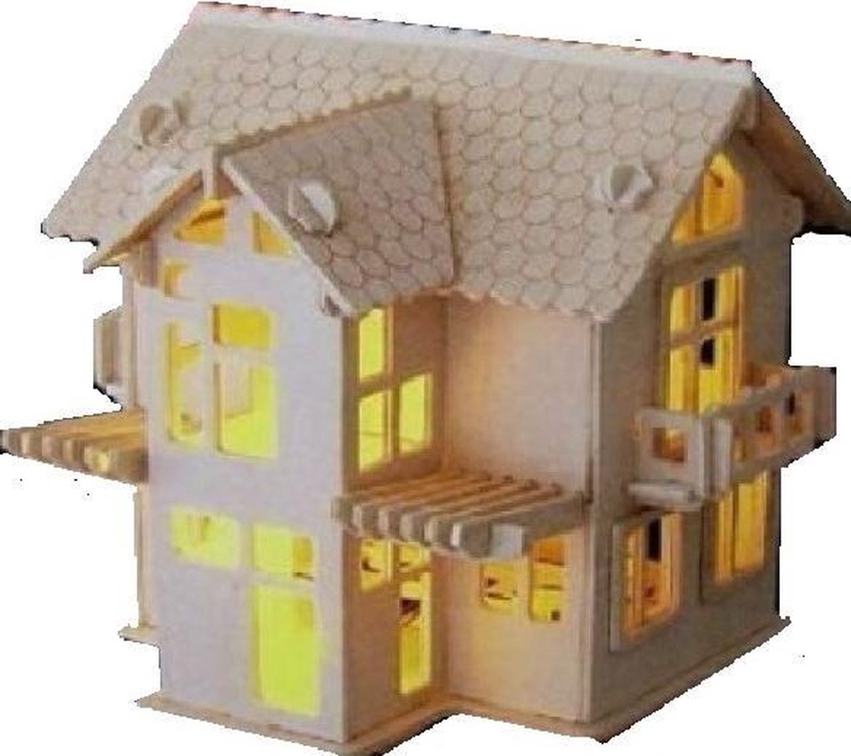 Houten bouwpakket van een huis-huisje-villa, model C. Schaal 1:48. Leuk pakket om te maken met een mooi resultaat. Educatief en goed voor het ruimtelijk inzicht. Geen lijm nodig, want de onderdelen klemmen in elkaar. Geschikt voor alle leeftijden vanaf 8 jaar.