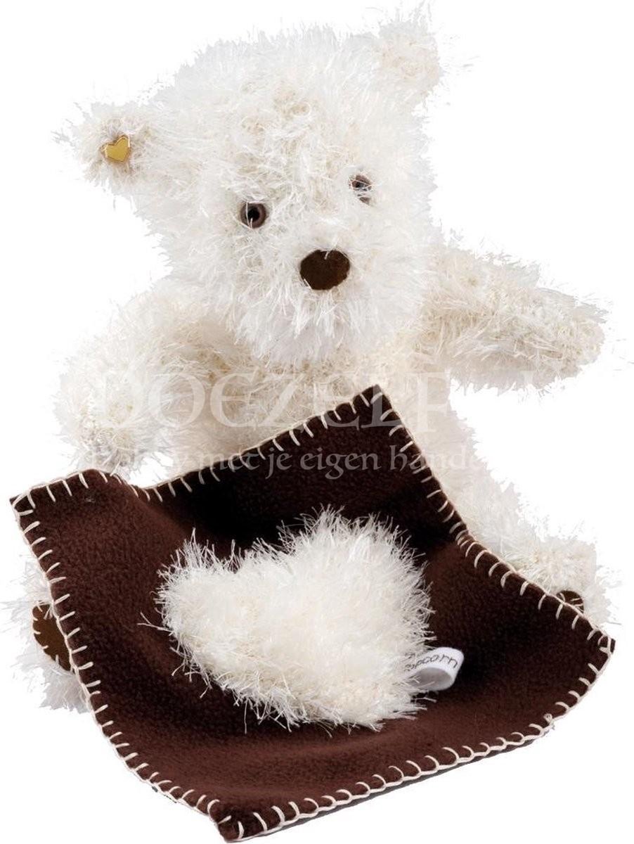 Breipakket van deze mooie knuffel Baby Coconut bestaat uit breiwol, garen, freece, vilt, geel hartje, 2 plastic ogen, adoptiecertificaat en zeer duidelijke werkwijze in het Nederlands. Als hij af is heeft hij een hoogte van 25x30 cm. *) Er zit geen vulling in het pakket