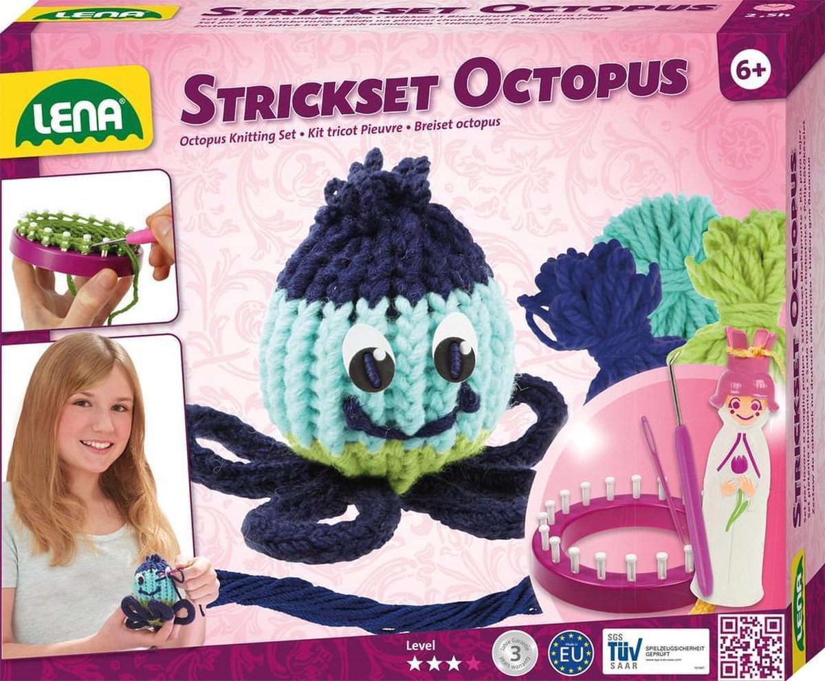 Leer met de breiring omgaan en knutsel een nieuw, leuk dierenvriendje. Complete set met hoogwaardige breiring, punnikklos, breihaak, kunststof naald, wol in 3 kleuren, en vilten ogen om op te naaien. Gedetailleerde handleiding ingesloten.