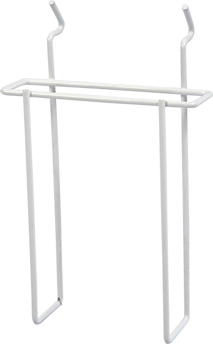 Wit gelakte brochurehouder van metaal met plank.Wit gelakte brochurehouder van metaal met plank.