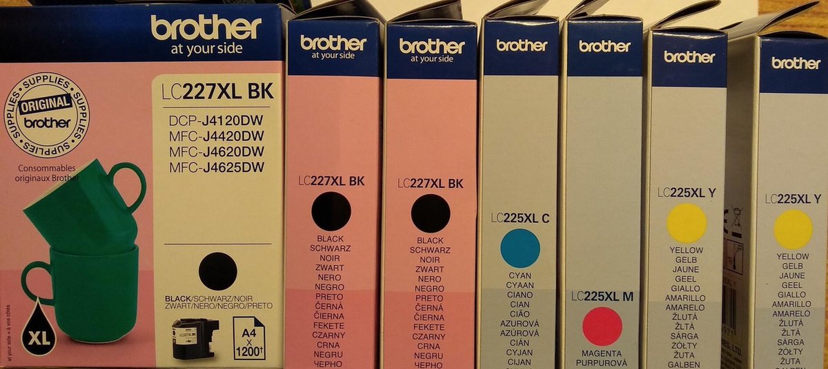 Voordeelpakket met 5 zwarte en 4 gekleurde originele Brother cartridges, geschikt voor o.a. de Brother DCPJ4120DW, MFC-J4420DW en MFC-J4620DW. In dit pakket zit zoveel inkt dat je er duizenden pagina's mee kunt uitprinten.