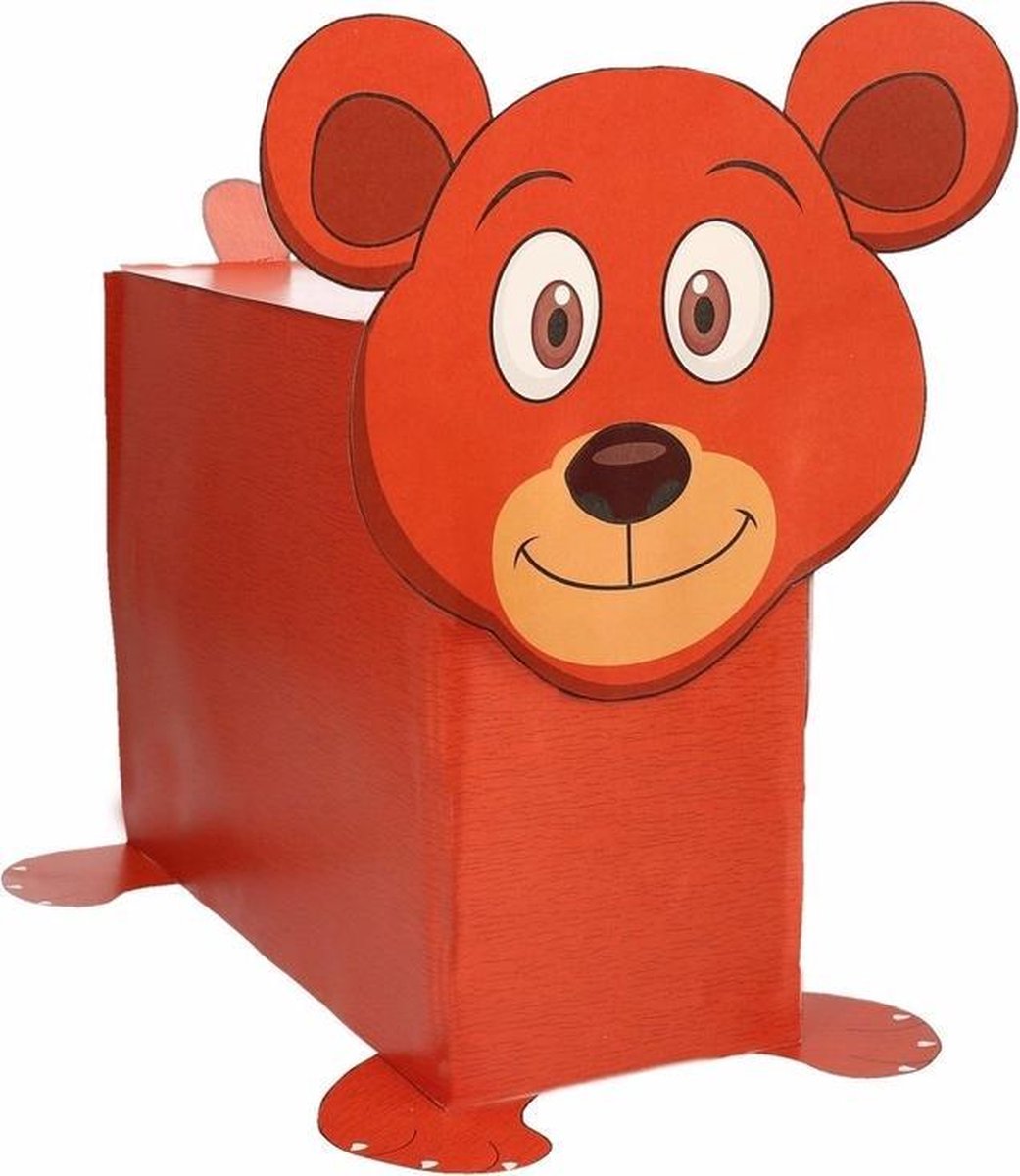 Bruine beer zelf maken knutselpakket / Sinterklaas surprise. Compleet basis bouwpakket om een beer te kunnen maken zoals op de afbeelding. Dit pakket bestaat uit de basismaterialen en instructies die u nodig heeft om een beer te knutselen van ongeveer 41 x 16 x 35 cm. Daarna kunt u de surpise naar eigen wens versieren en personaliseren. Extra nodig: - Lijm - Schaar - Plakband / tape Ruimte voor kado: In het doosje is een ruimte van ongeveer 35 x 24 x 12 cm. Bestaande uit: 1x Doosje 2 bruin zonder opdruk, 6x Basis artikel dierenmasker beer, 1x Instructievel dieren knutselpakket