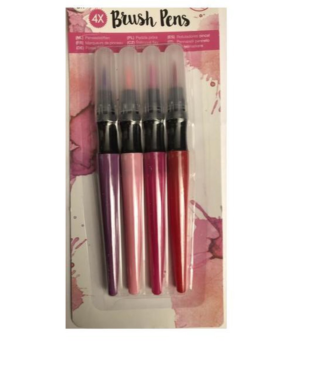 Brush Pen 4 kleuren set paars - lichtroze - donkerroze - rood