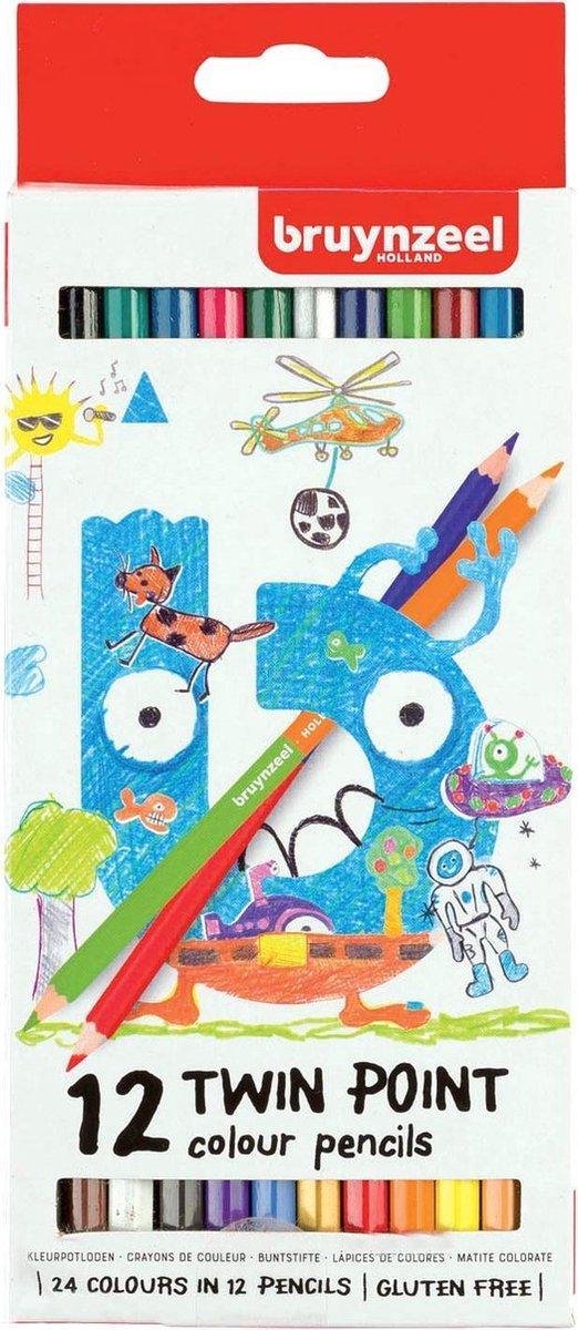 Bruynzeel kleurpotloden ~Bruynzeel 12 TWIN POINT kleurpotloden 12 dubbele kleurpotloden: dus 24 kleuren! Beleef dubbel zoveel kleurplezier met wel 24 verschillende kleuren om prachtige kleurplaten (kunstwerken) te maken. Bruynzeel ~ Proud suporter of everyones imagination since 1948 Cornelis Bruynzeel had bij het in handen hebben van het eerste Bruynzeel potlood in 1948 vast niet gedacht dat Bruynzeel vandaag de dag meer dan 65 jaar potloden produceert. De unieke karaktereigenschappen van Bruynzeel potloden op een rij: De kern van het potlood wordt aan beide kanten van het hout vastgelijmd; De kern van het potlood is extra dik waardoor de potloden langer meegaan; Alleen hout uit verantwoord onderhouden bossen wordt door Bruynzeel gebruikt; De intensiteit van de kleurafgiftes van de potloden: intenser wordt het niet!; Geschikt voor vrijwel alle leeftijden (m.u.v. kinderen onder de 3 jaar) Waarom kiezen voor Bruynzeel? Bruynzeel heeft aan iedereen gedacht: van kunstenaars tot