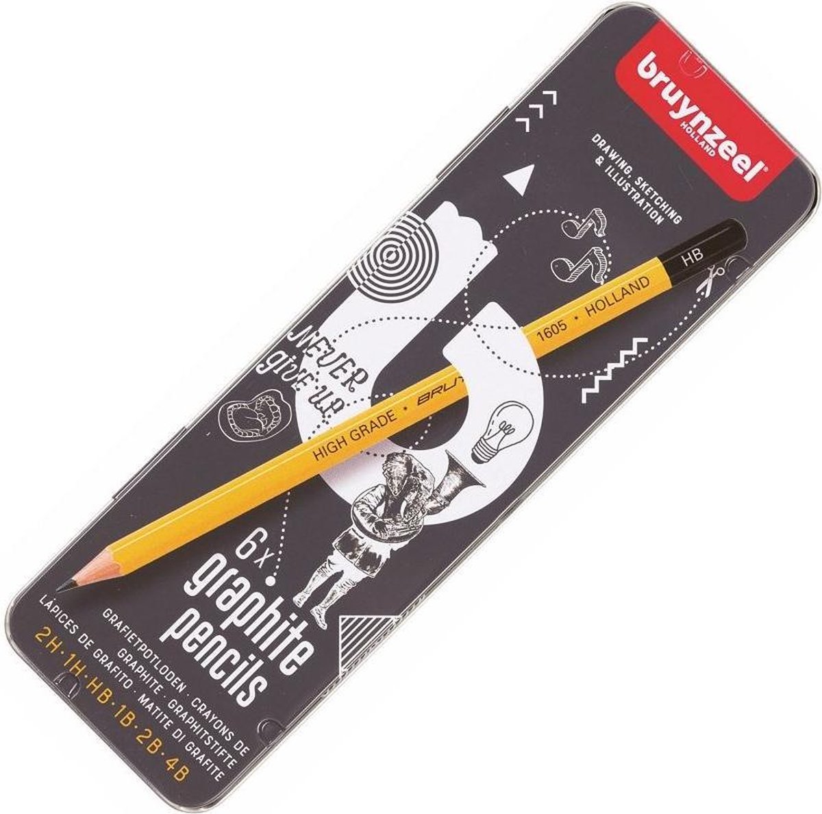 Met dit blik van Bruynzeel met6 grafietpotloden kun jij tijdens de tekenles of de wiskundeles wel een tijdje vooruit! Er zitten twee H-potloden in, één HB-potlood en drie B-potloden. Zo kun je tijdens de tekenles ook nog met verschillende hardheden werken. En als je klaar bent, kun je ze gewoon weer netjes opruimen in het blik.
