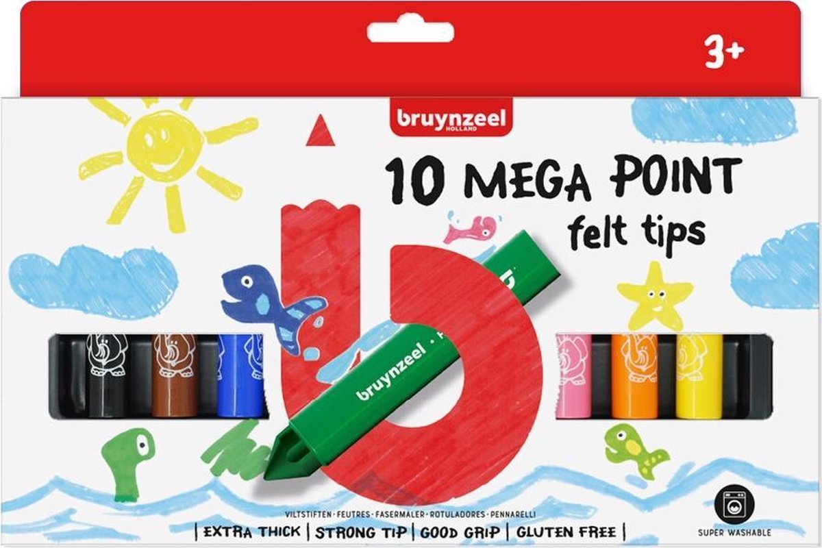Bruynzeel Mega Point viltstiften. 10 stuks. Geschikt voor kinderen vanaf 3 jaar.