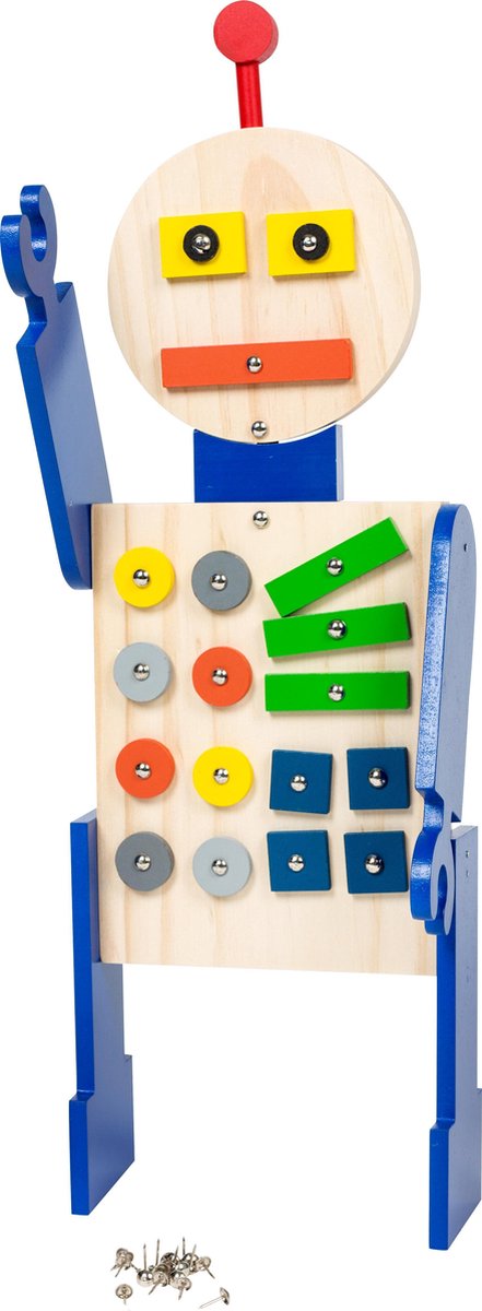 BuitenSpeel Robot timmeren is een grote doe-het-zelf houten robot die je met de bijgeleverde spijkers en onderdelen zelf in elkaar kan zetten. Deze grote robot van hout is een prachtige aanvulling voor elke kinderkamer.De robot is 50cm hoog en 17cm breed. Incl spijkers.