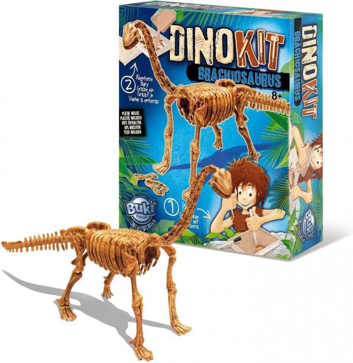 Dino uithakken. Complete opgraaf set met een verzwaarde hamer, een goede beitel en kwast. Er is veel aandacht gegeven in de productie van het gereedschap, zodat het ook echt werkt. Als alle onderdelen uitgraven zijn kan je het skelet in elkaar zetten. Deze set bevat een extra zakje gips zodat je de dino opnieuw kunt ‘begraven’ en kunt doorgeven aan je beste vriend..