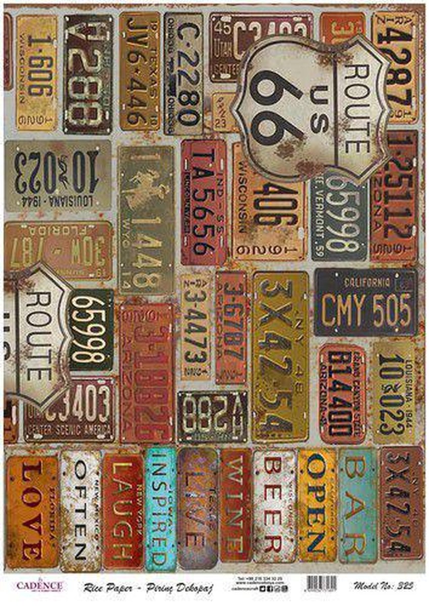 Cadence rijstpapier kentekenplaten USA Model No: 325 30x42cm