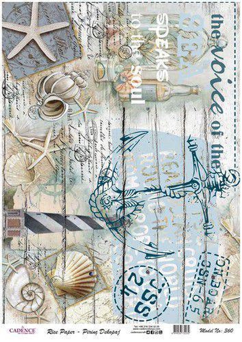 Cadence rijstpapier Vintage anker - schelpen Model No: 360 30x42cm