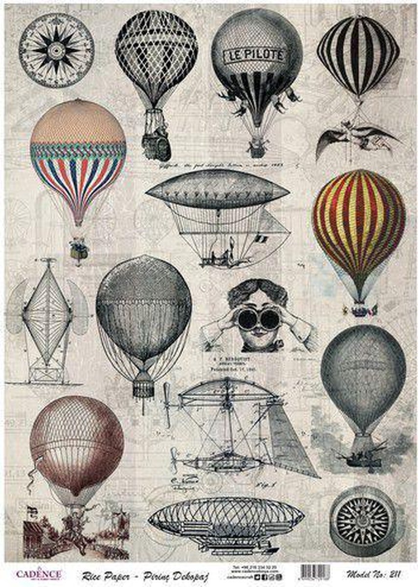 Cadence rijstpapier vintage luchtballonnen Model No: 211 30x42cm