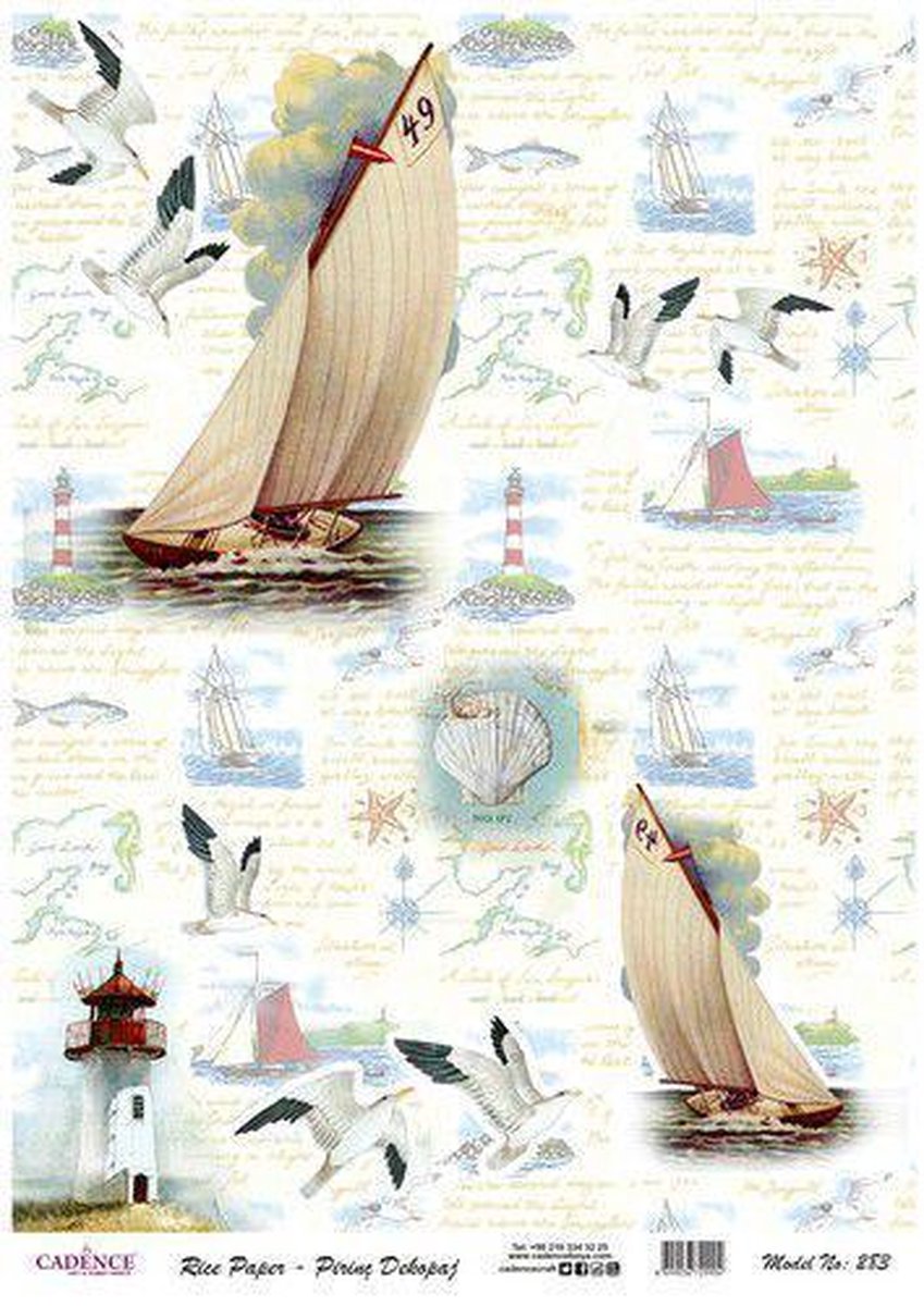 Cadence rijstpapier zeilboot - meeuwen Model No: 283 30x42cm