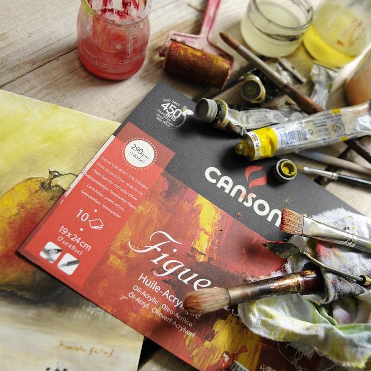 1 aan de korte zijde gelijmd blok van 10 vellen, 33 x 24 cm Canson® Figueras® 290 g. Canson® Figueras® is een hoogkwalitatief papier dat speciaal ontwikkeld werd voor olieverf. Het combineert technische prestaties met artistieke kwaliteit: een uitstekende kleurweergave en een natuurlijke korrel met linnen doek-effect. Troeven: Uitstekende kleurweergave dankzij de doeltreffende afwerking waardoor de schilderlaag aan de oppervlakte blijft. Stevig papier van 290 g/m² dat goed bestand is tegen dikke lagen verf. Een zeer natuurlijke textuur die lijkt op die van een linnen doek. Natuurlijk wit, vergeelt niet na verloop van tijd. Certificaten en labels: Conform de ISO 9706-norm die een optimale duurzaamheid van het papier garandeert. Wordt verkocht per: 1 aan de korte zijde gelijmde blok van 10 vellen. Formaat: 33 x 24 cm Grammage : 290 g/m²