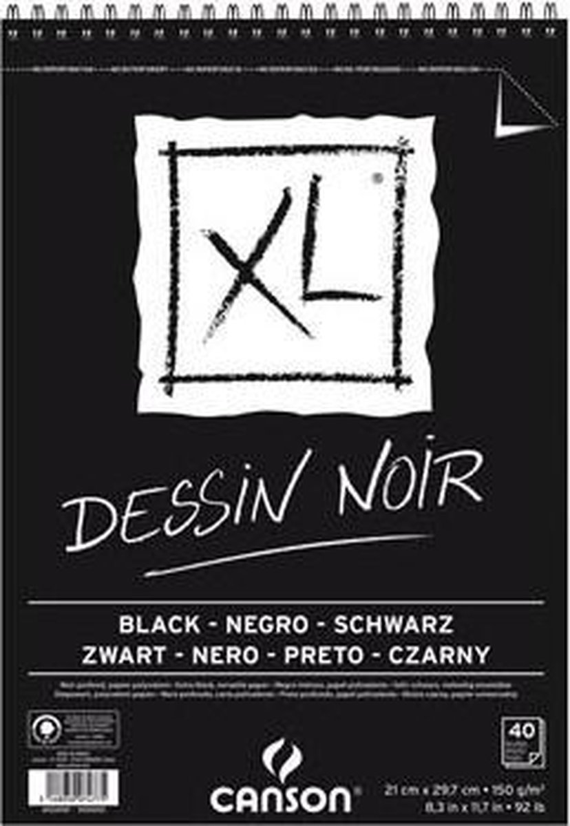 Blok van 40 blad. Papier van 150 g/m². Licht gekorreld. Geschikt voor schetsen en tekenen met potloden en pastels. Ideaal om contrasten te creëren. Zwart papier. Met spiraalbinding op de korte zijde. Met microperforatie.