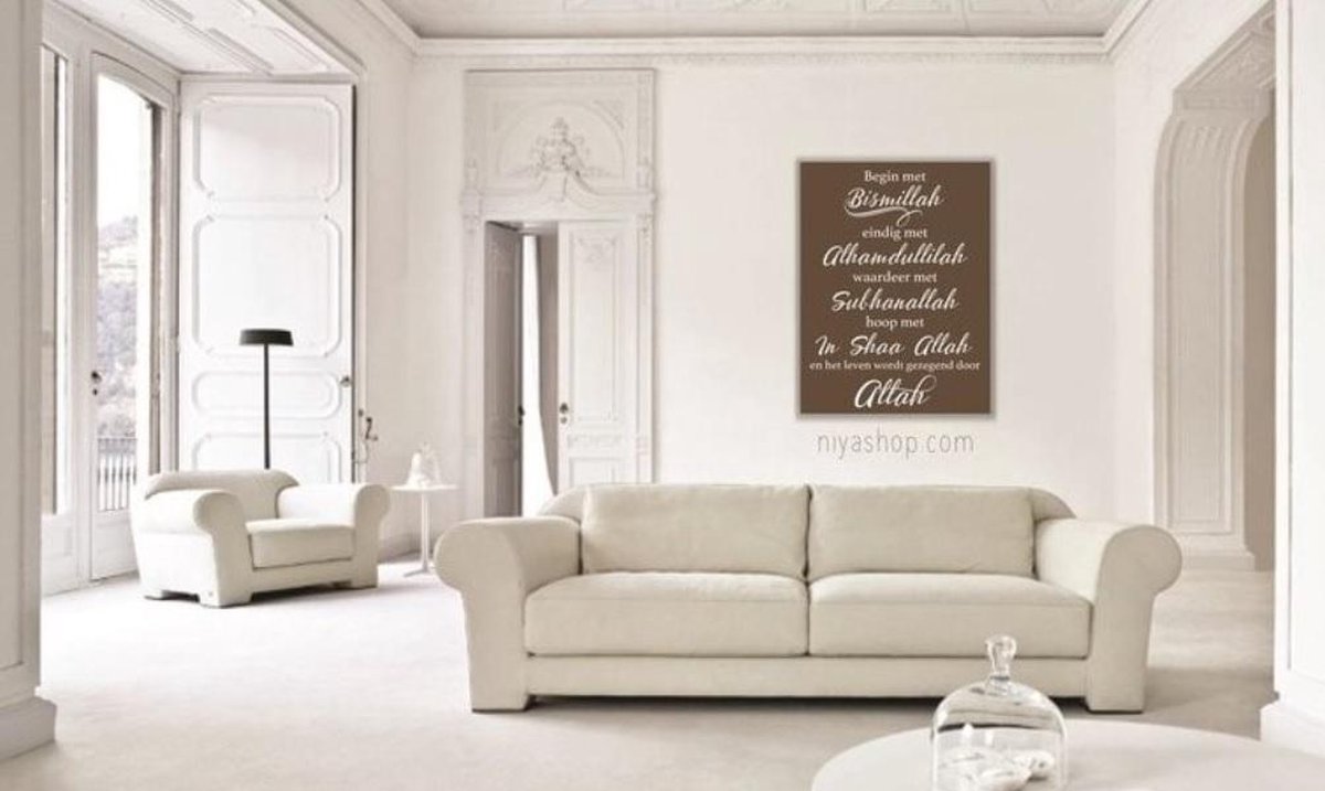 Begin met bismillah, op canvas. Inspirerend voor het hele gezin! Deze canvas is in de afmeting 60x80cm en meerdere kleuren verkrijgbaar. Dikte van de canvas: 2cm. Inclusief ophangsysteem aan de achterzijde van de canvas. De werkelijke kleuren van de canvas zijn minder fel als op het beeldscherm.