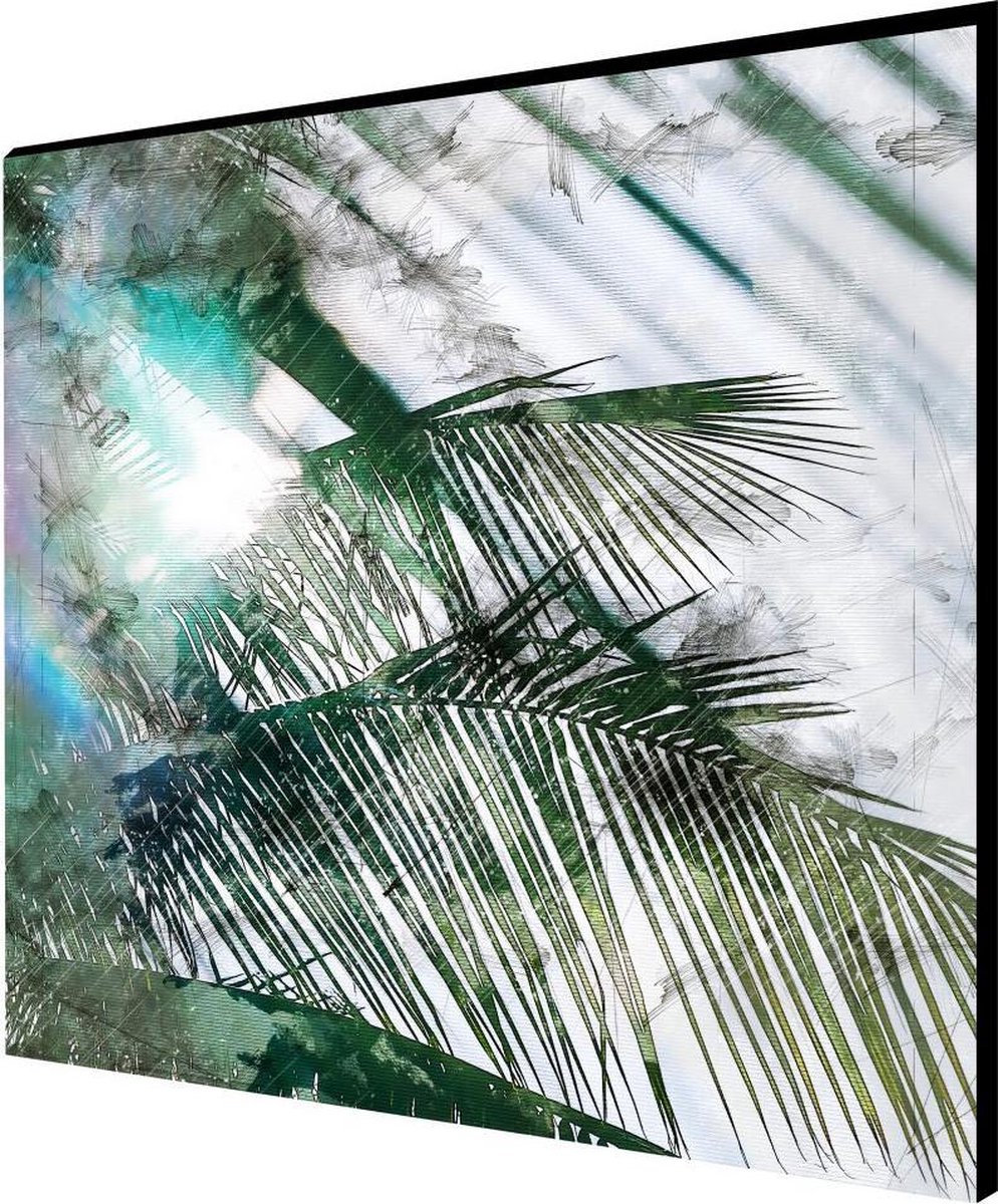 Dit canvas doek is gemaakt door Suitchi en is verkrijgbaar in de volgende afmetingen: 100 x 100 cm en 70 x 70 cm. Canvas palm trees Afmetingen: 100 x 100 cm Afbeelding: Blad van een palmboom Verpakkingsinhoud: Canvas doek + frame Kenmerken Hoogte: 100 cm Breedte: 100 cm Dikte frame: 25 millimeter Gewicht doek: 80 g/m² Gewicht frame: 0,476 kilo/meter Materiaal doek: Polyamide/polyester non-woven voorzien van rubberen pees Materiaal frame: Aluminium