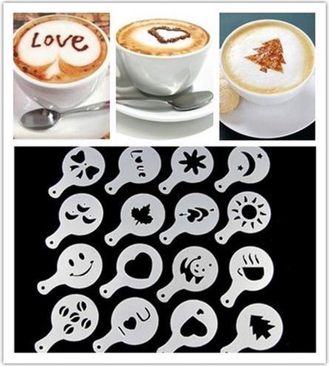 Jij kunt nu ook een echte Barista zijn met deze leuke en handige sjablonen. Maak van elk kopje cappuccino een echt kunstwerkje! Met de cappuccino sjablonen zijn ook chocolademelk, cupcakes, koekjes, taart en bijvoorbeeld soep te versieren. Werkwijze Schuim eerst de melk en schenk deze bij de koffie tot aan de rand. Volle melk schuimt het beste. Leg het sjabloon op het kopje en strooi de cacao, chocoladepoeder of kaneel over het sjabloon. Hoe dichter u het sjabloon boven de cappuccino houdt, hoe scherper en duidelijker de afbeelding zal worden. Leg het sjabloon op het kopje en strooi de cacao, chocoladepoeder of kaneel over het sjabloon. De vorm van het sjabloon blijft nu achter op het melkschuim. Na gebruik spoel je het sjabloontje af met water en is het weer klaar voor een volgend gebruik! Het restant kan u in een bakje van de sjabloon afschudden en weer opnieuw gebruiken. Het strooien kan met een strooibus, maar ook met een theezeefje. De herbruikbare sjablonen zijn eenvoudig af te