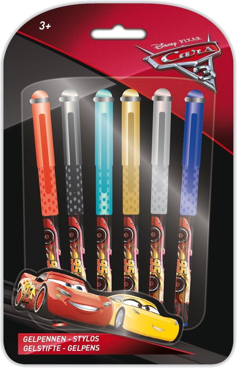 Slammer Disney Cars 3 gelpennen Maak de mooiste creaties met deze gelpennen van Cars 3. In de set zitten zes verschillende gelpennen. Specificaties: Kleur: multicolor Materiaal: kunststof Geslacht: junior Lengte pen: 15 cm Geschikt voor kinderen vanaf 3 jaar. Inhoud: 6 Gelpennen