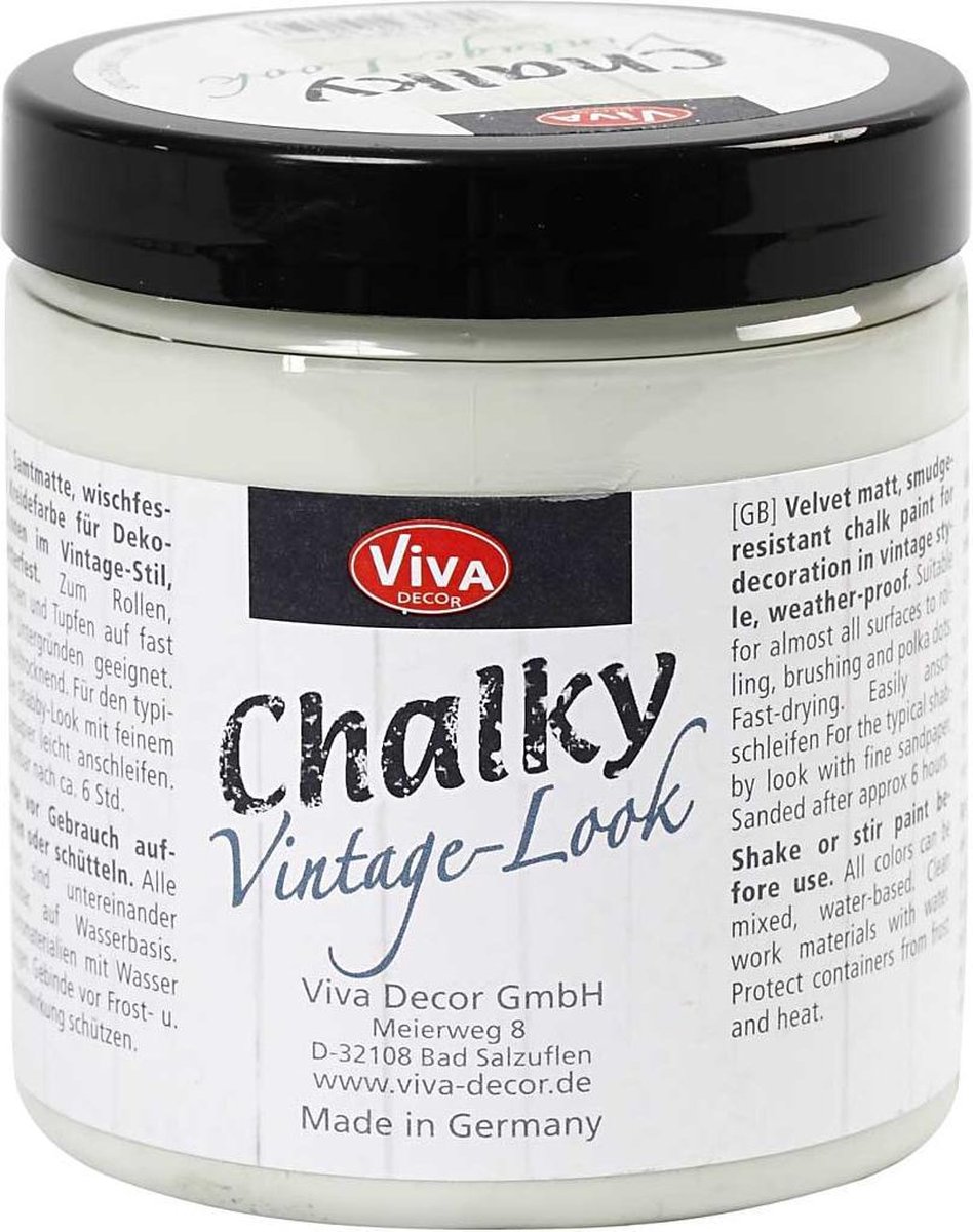 Vintage look verf met matte uitstraling voor hout, stevig karton, glas etc. Schuur het oppervlak na droging met schuurpapier voor een vintage look