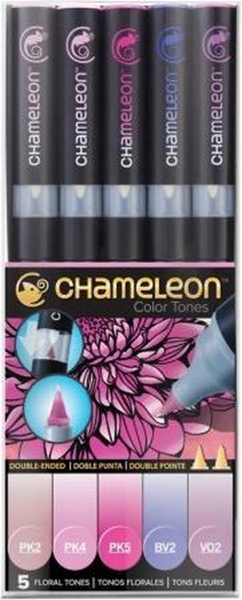 Set van 5 markers, marker met twee punten om zonder overgangen te blenden.