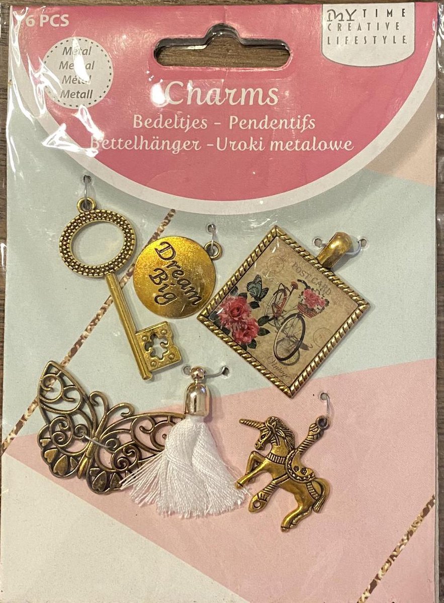 Metalen Hangers Set - 6 Stuks - Antiek koper kleur Leuk om je Ketting , armband of tas ect. mee te pimpen. Verschillende formaten 1,5 tot 5cm