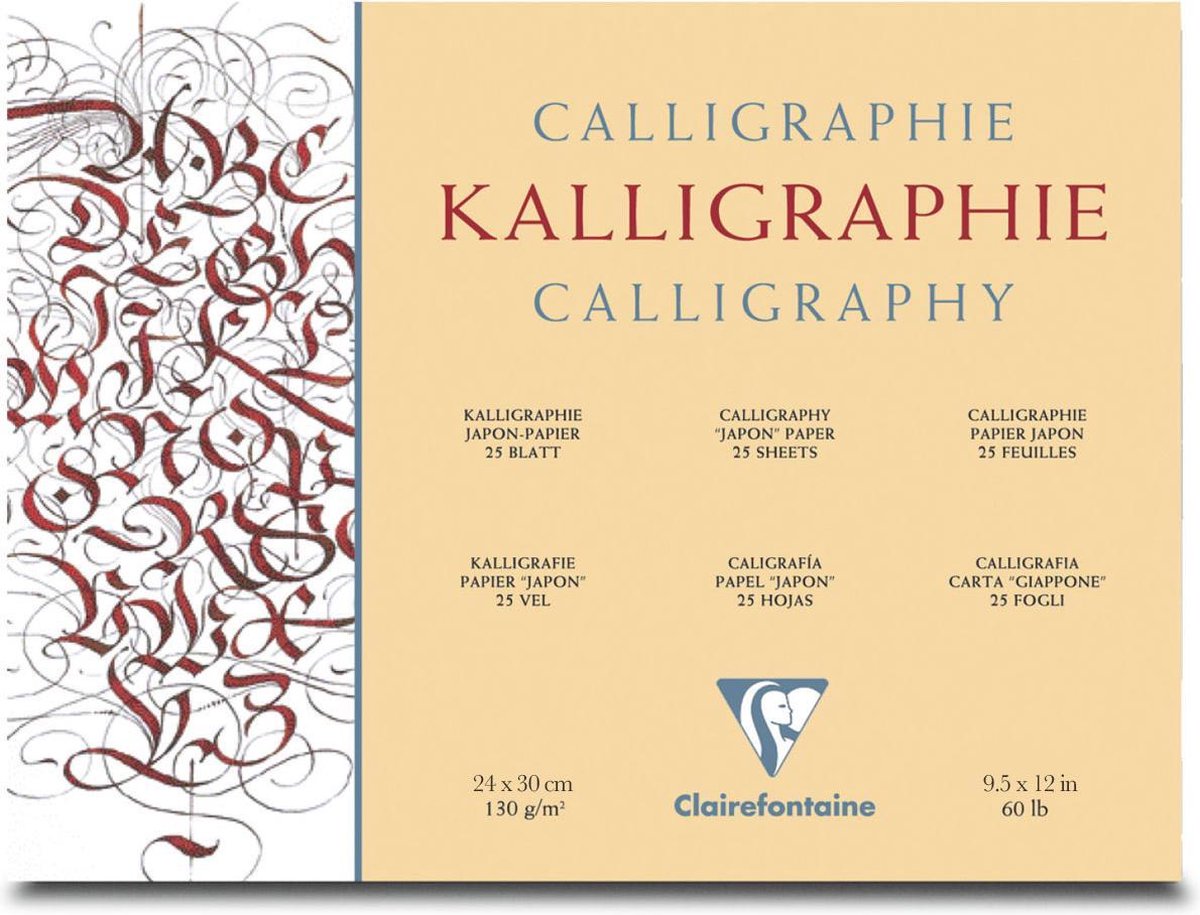 Dit kalligrafiepapier is speciaal door Clairfontaine ontwikkeld met Japans papier van 100% cellulose papierpulp. Het papier is zuurvrij en neutraal gelijmd. Geschikt voor klassieke kalligrafie met inkt, veer en penseel. Verkrijgbaar in een blok met 25 vel in 24x30cm of 30x40cm. Kenmerken – Formaat 24 x 30 cm – Blok 25 vel – Gewicht 130g
