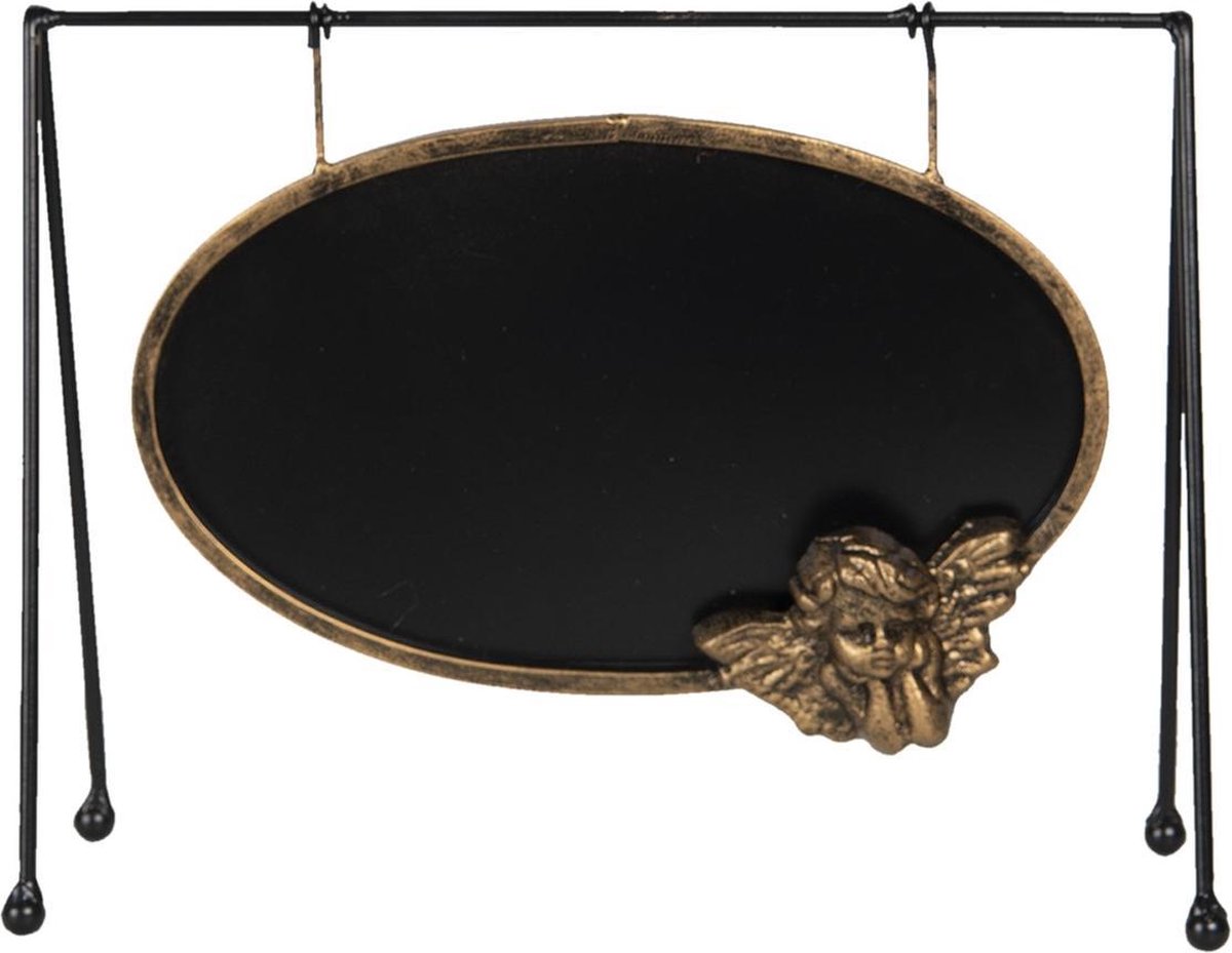 Vintage ovaal krijtbord hangend aan een goudkleurig metalen rekje van het merk Clayre & Eef. Dit product kan ook worden gevonden onder de volgende categorieën: Staand of Tekstbord
