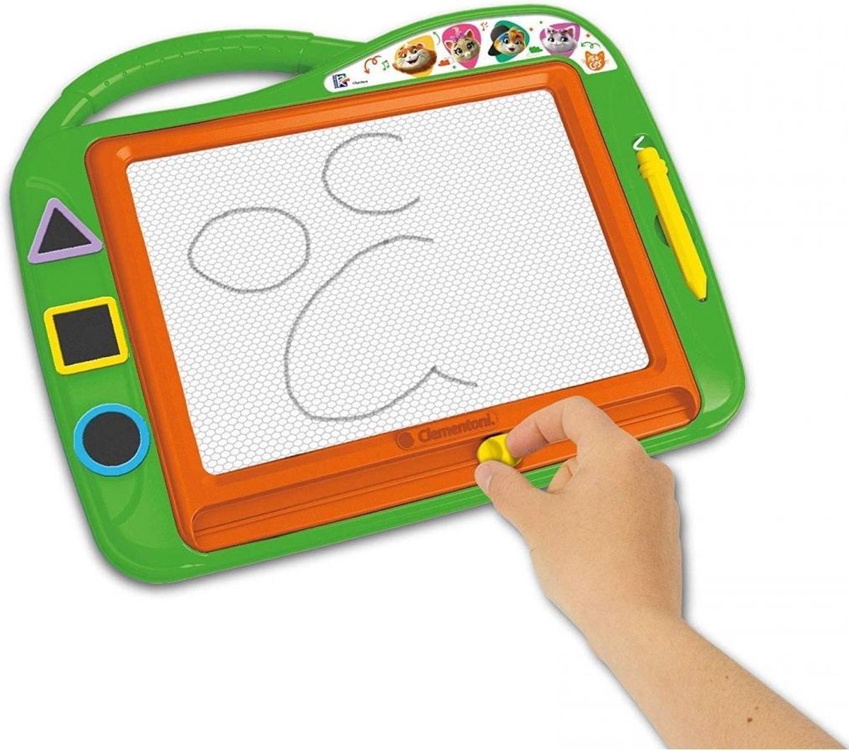 Clementoni 44 Cats magnetisch tekenbord Dit magnetische tekenbord biedt uren tekenplezier zonder knoeien. Met de magnetische pen maak je de mooiste tekeningen. En je wist het ook zo weer uit! Ideaal speelgoed om kinderen zoet te houden tijdens lange autoritten en een geweldige manier om de creativiteit te stimuleren. Specificaties: Kleur: groen, oranje Geslacht: junior Materiaal: kunststof Afmeting: 46 x 33 x 3,3 cm (L x B x D) Leeftijd: vanaf 4 jaar