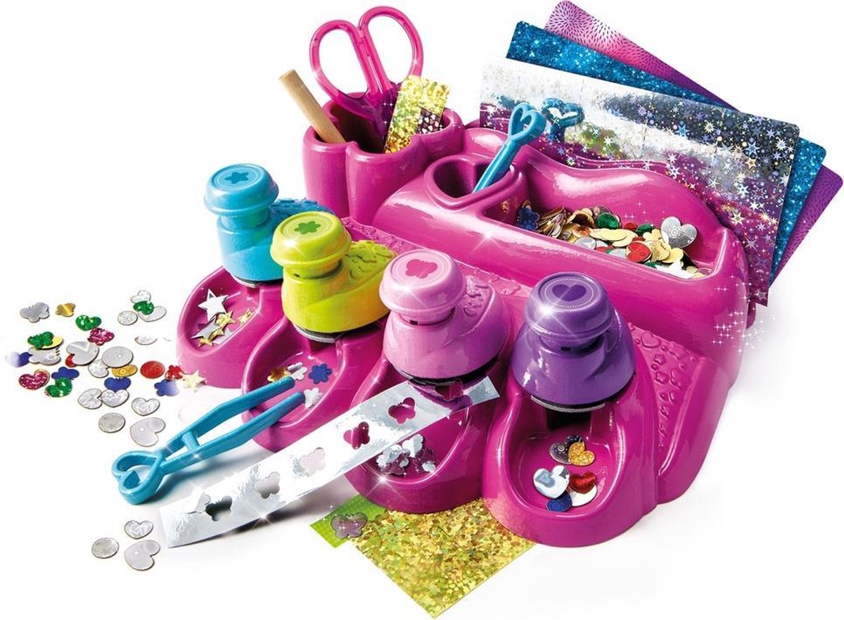 Clementoni Crea Idea glitterlab Met deze set kunnen kinderen hun eigen stickertjes maken. De papieren vellen kunnen ze ponsen om er leuke figuurtjes van te maken. Die leuke figuurtjes kunnen ze vervolgens overal opplakken. De set bevat alles om direct aan de slag te gaan, inclusief geïllustreerde handleiding. Geschikt voor kinderen vanaf 7 jaar.