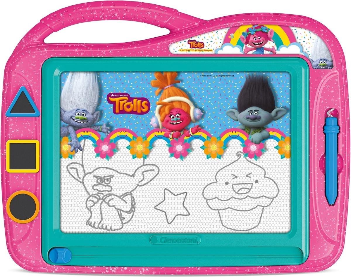 Clementoni Trolls magnetisch tekenbord Dit magnetische tekenbord biedt uren tekenplezier zonder knoeien. Met de magnetische pen maak je de mooiste tekeningen. En je wist het ook zo weer uit! Ideaal speelgoed om kinderen zoet te houden tijdens lange autoritten en een geweldige manier om de creativiteit te stimuleren. Specificaties: Kleur: roze Geslacht: junior Materiaal: kunststof Afmeting: 30 x 42 cm Geschikt voor kinderen vanaf 4 jaar. Inhoud: 1 Tekenbord 1 Pen 3 Vormpjes
