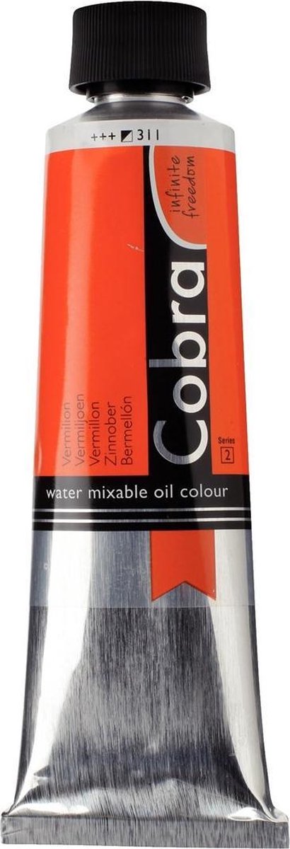 Artist Quality oils for solvent free oil painting. Mix and clean with water. Cobra Artist is available in 70 colours. Vermilion 311.