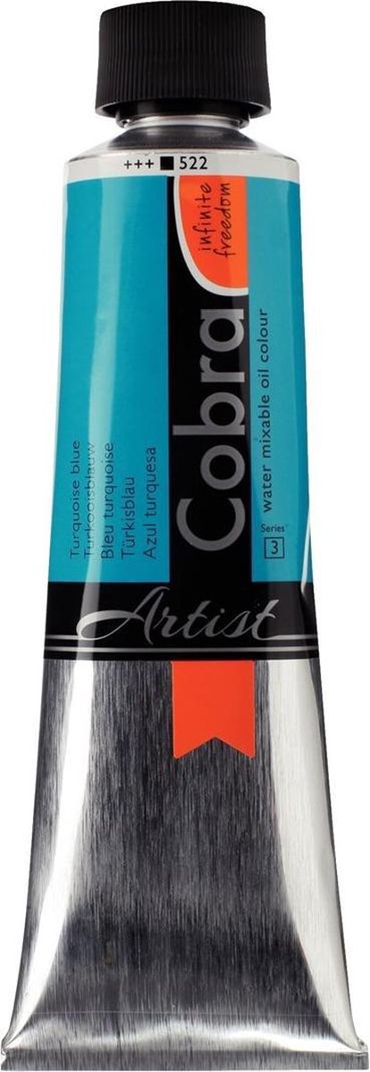 Artist Quality oils for solvent free oil painting. Mix and clean with water. Cobra Artist is available in 70 colours. Turquoise Blue 522.
