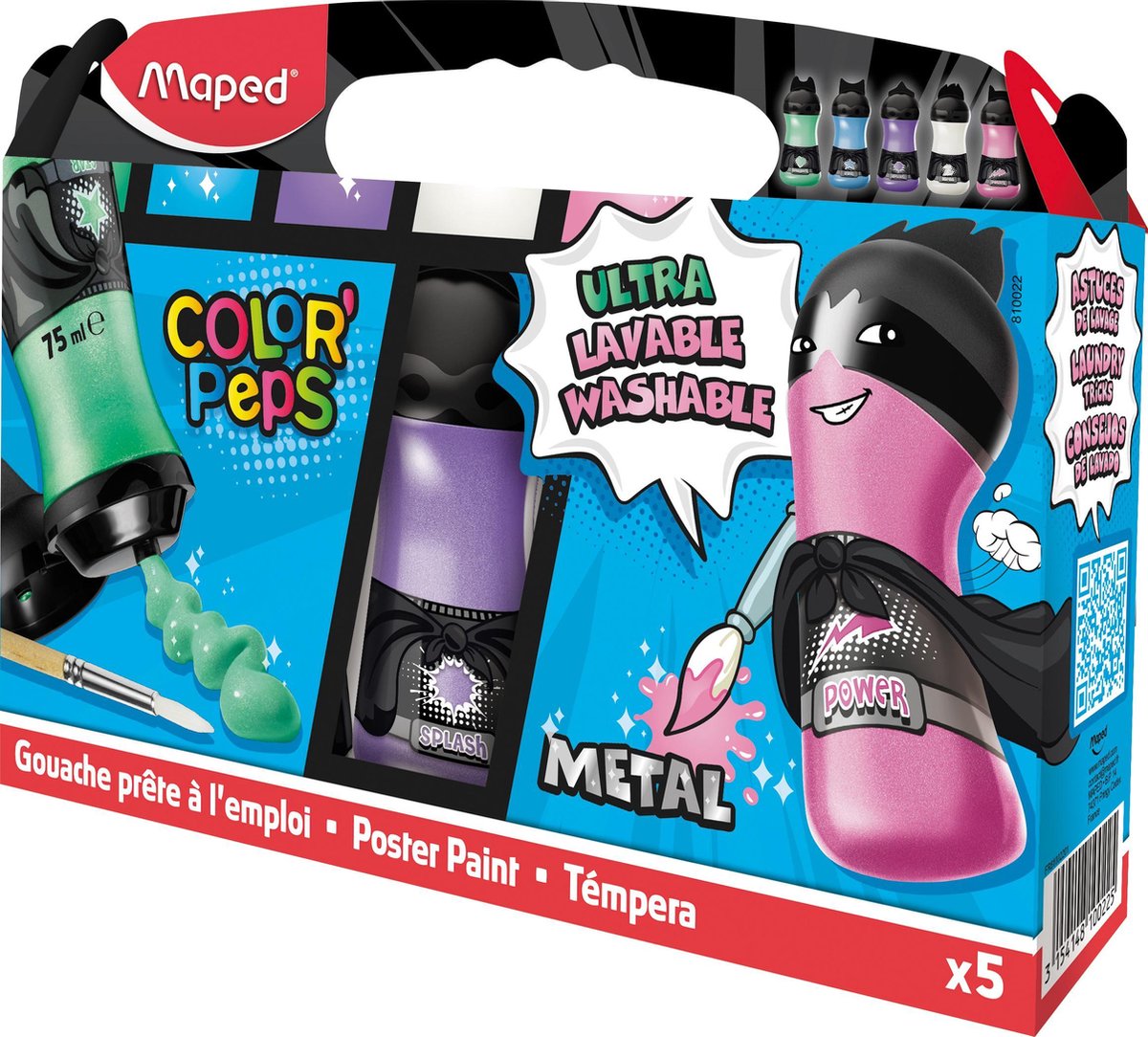 COLOR'PEPS plakkaatverf ultra uitwasbaar - 5 metallic - flacons à 75 ml - in kartonnen doos x 5