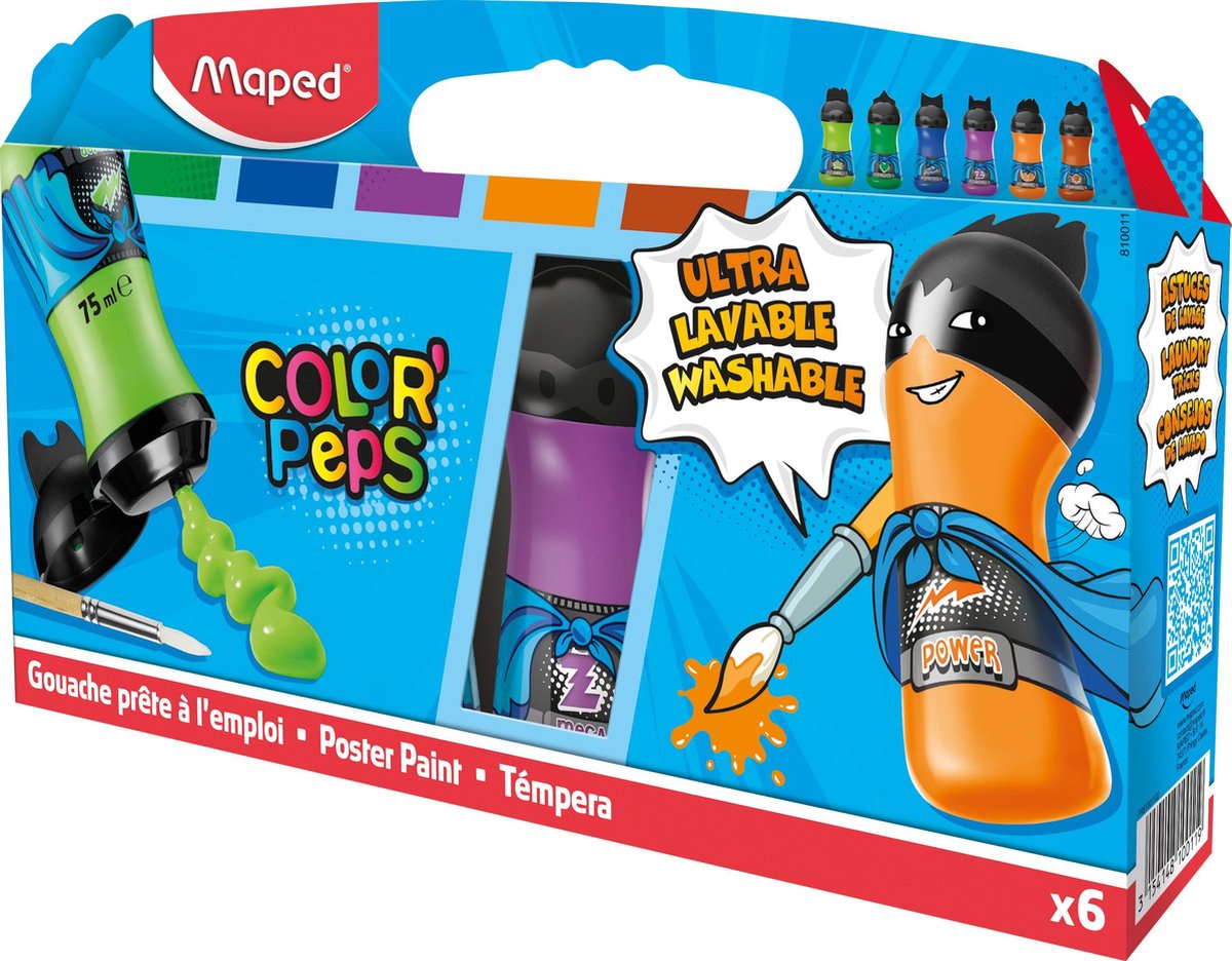 Plakkaatverf met een unieke formule: ultra dekkend én ultra uitwasbaar. Uitwasbaar in de machine bij 30 graden en zonder voorwas, zelfs na 24 uur. De plakkaatverf is direct te gebruiken zonder toevoeging van water. Zeer heldere en levendige kleuren. Praktische flacons van 75 ml voor thuisgebruik. Doppen zijn eenvoudig te openen en zitten vast aan het flacon. Set van 6 secundaire kleuren.