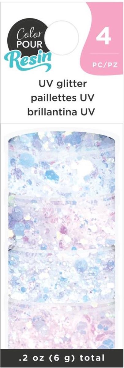 UV glitter in 4 verschillende kleuren die door uv (zon) licht van kleur veranderen, kan in giethars projecten gebruikt worden, 6 gr
