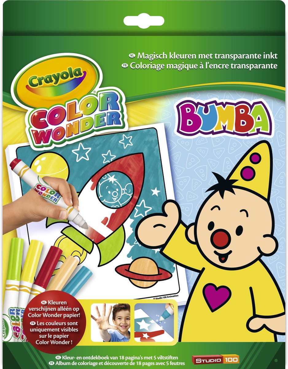 Start met kleuren met de Crayola Color Wonder box set met Bumba. Ben jij ook zo ondeugend als Bumba? Haal dan samen met dit vrolijke clowntje de grootse fratsen uit in dit Color Wonder kleurboek van Crayola. Uiteraard komen ook de andere circusartiesten langs, zoals: vriend Bumbalu, beer Nanadu en nijlpaard Pantoef. Kleur jouw grote circusvrienden en ontdek de geheime elementen die verborgen zitten in de achtergronden van de kleurplaten. Color Wonder is een speciaal concept voor kinderen die nog weleens buiten de lijntjes kleuren. De inkt van de 5 bijgevoegde Color Wonder stiften verschijnen alleen op Color Wonder papier en niet op andere ondergronden. Color Wonder neemt hierdoor stress weg over vlekken maken op huid, kleding of meubelen. Kleuren was nog nooit zo leuk en verrassend als met Color Wonder, het knoeivrije kleurboek van Crayola! - Color Wonder kleurboek Bumba(18 pagina's). - 5 Color Wonder viltstiften. - Inkt van Color Wonder viltstiften verschijnen alleen op Color Wonder