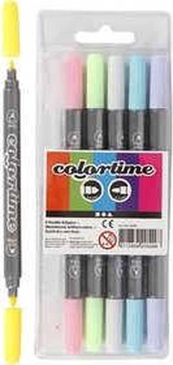 Colortime dubbelstift, lijndikte: 2,3+3,6 mm, pastelkleuren, 6stuks
