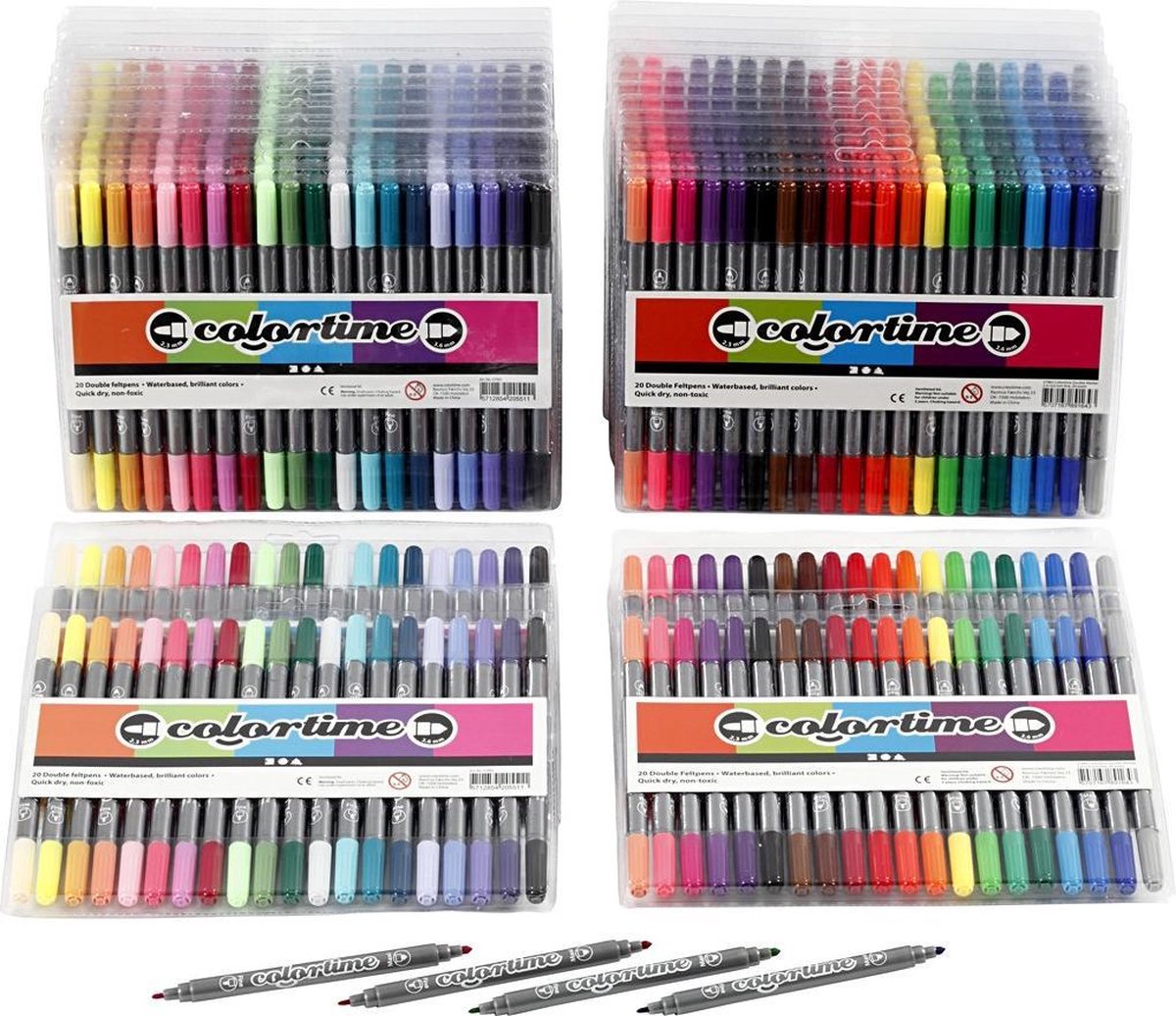 Colortime dubbelstift, lijndikte: 2,3+3,6 mm, standaardkleuren, extra kleuren, 24x20stuks