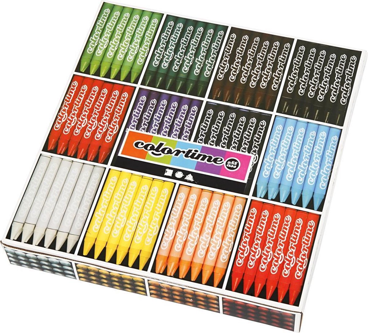 Goede kwaliteit Colortime kleurkrijt - bijzonder geschikt voor kleine kinderen Geleverd in een kartonnen doos met 12 verschillende kleuren, van elk 24 stuks