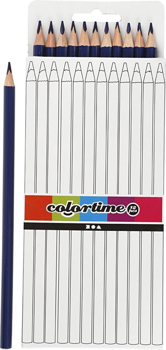 Colortime kleurpotloden Driehoekige kleurpotloden met natuurlijke greep, wat zorgt voor een ontspannen houding tijdens het kleuren. Geschikt voor links- en rechtshandigen. Deze set kleurpotloden zijn verpakt in een kartonnen doos. Specificaties: Geslacht: junior Materiaal potlood: hout, grafiet Materiaal doos: karton Lengte: 17 cm Vulling: 3 mm Kleur: donkerblauw Leeftijd: van 4 tot 12 jaar Inhoud: 12 Kleurpotloden 1 Opbergdoos