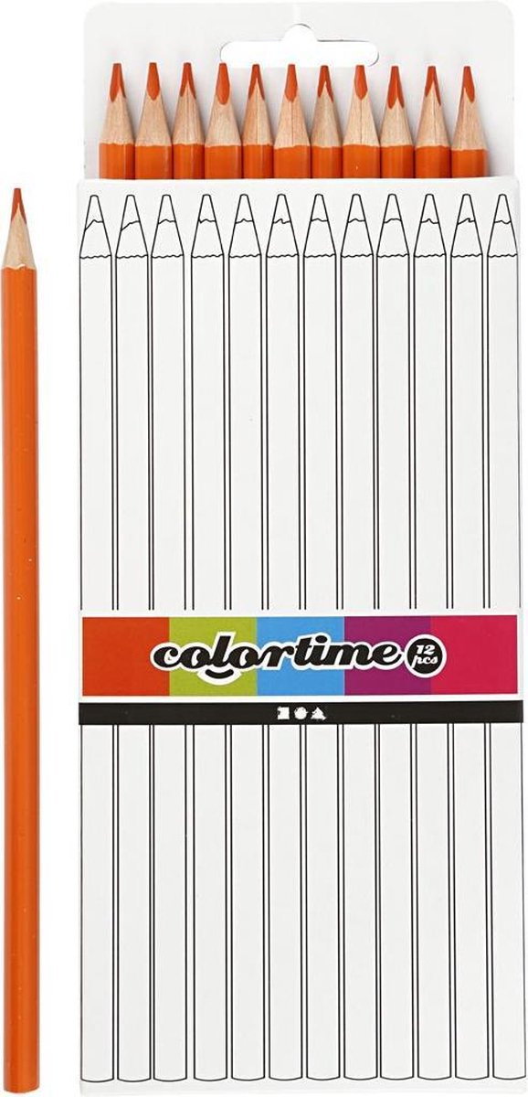 Colortime kleurpotloden Driehoekige kleurpotloden met natuurlijke greep, wat zorgt voor een ontspannen houding tijdens het kleuren. Geschikt voor links- en rechtshandigen. Deze set kleurpotloden zijn verpakt in een kartonnen doos. Specificaties: Geslacht: junior Materiaal potlood: hout, grafiet Materiaal doos: karton Lengte: 17 cm Vulling: 3 mm Kleur: oranje Leeftijd: van 4 tot 12 jaar Inhoud: 12 Kleurpotloden 1 Opbergdoos