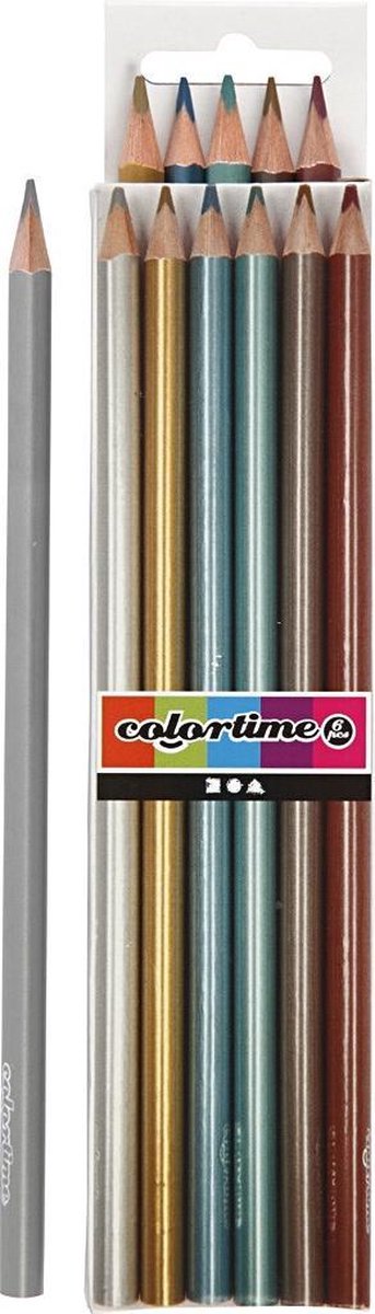 Colortime kleurpotloden. metallic kleuren. L: 17.45 cm. vulling 3 mm. 6 stuk/ 1 doos