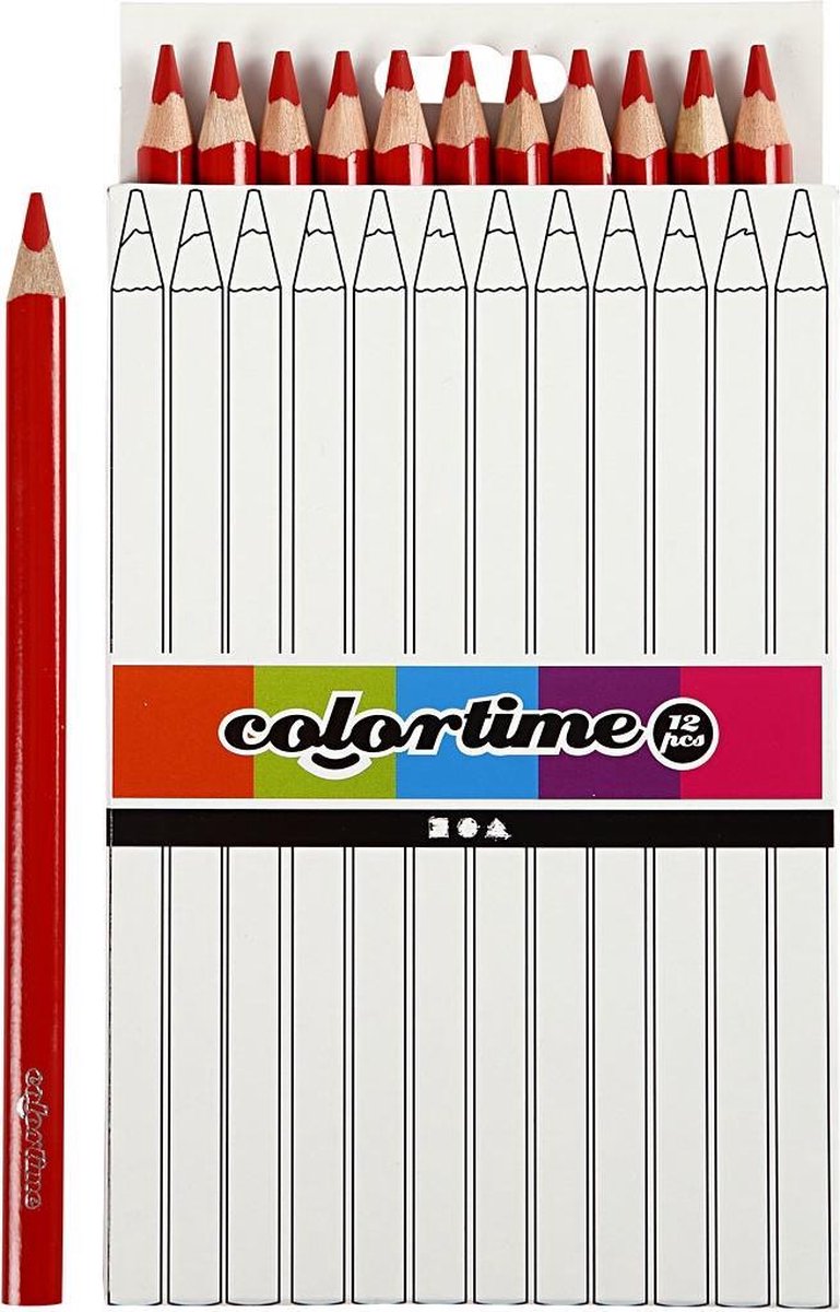 Colortime kleurpotloden. rood. L: 17.45 cm. vulling 5 mm. JUMBO. 12 stuk/ 1 doos
