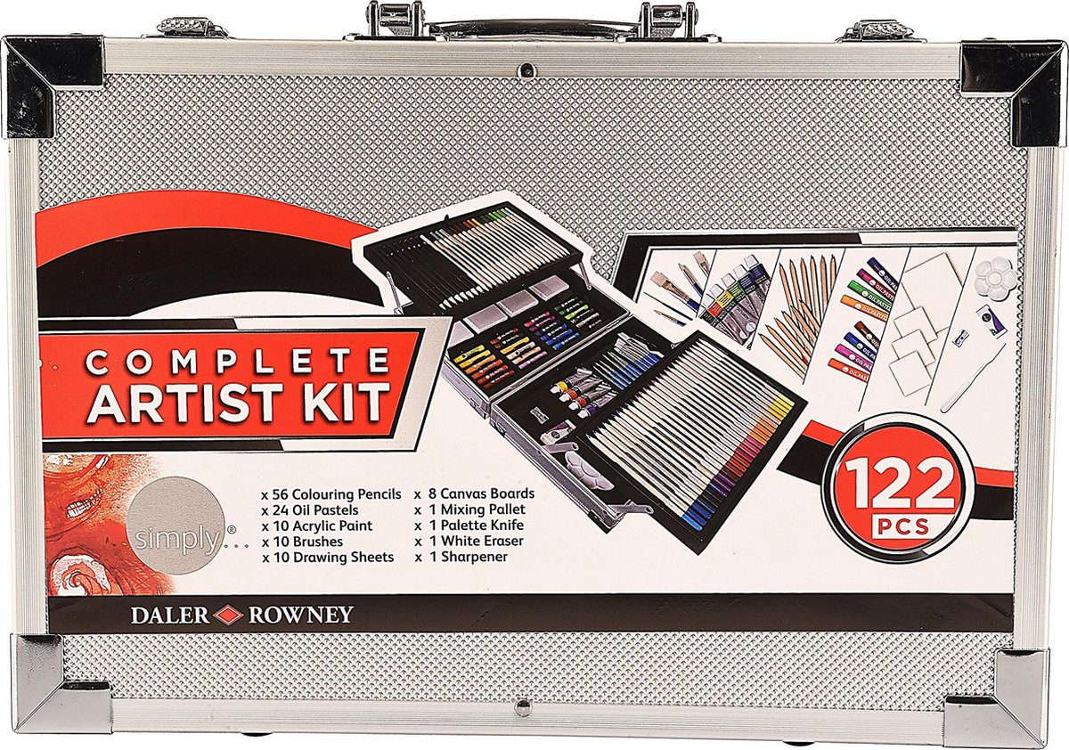 Set bestaat uit: - 56x kleurpotloden - 24x oliepastels - 10x acrylic verf - 10x penselen - 10x tekendoeken - 8x canvassen - 1x meng pallet - 1x pallet mes - 1x gom -1x slijper