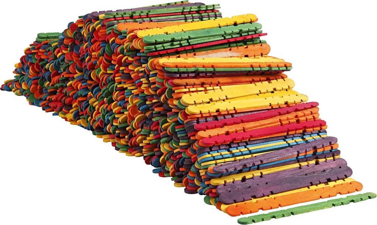 Constructiehoutjes. diverse kleuren. L: 11.4 cm. B: 10 mm. 1000 stuk/ 1 doos