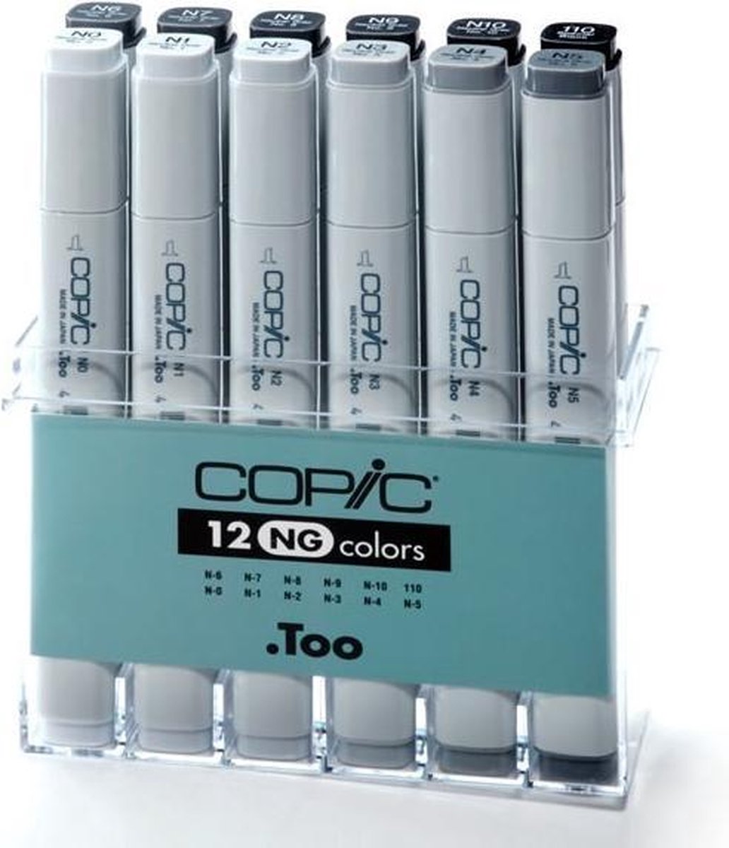Copic Classic marker set pastel. Set met 12 kleuren copic markers. Copic markers zijn stiften op alcoholbasis. De stift heeft 2 punten: een beitelpunt en een spitse punt. Wordt geleverd in handige opbergbox waar de stiften kunnen staan.