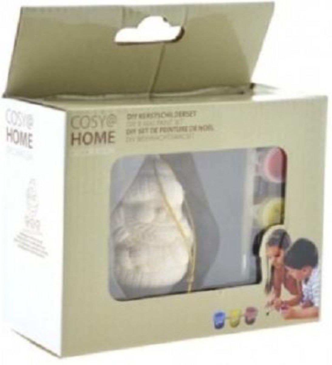 De schilderset bestaat uit een kerstman en zes verschillende kleuren verf met een kwast. De kerstman is voorzien van een hanger. Keramiek Afmeting artikel: 8 x 8 x 8 cm.